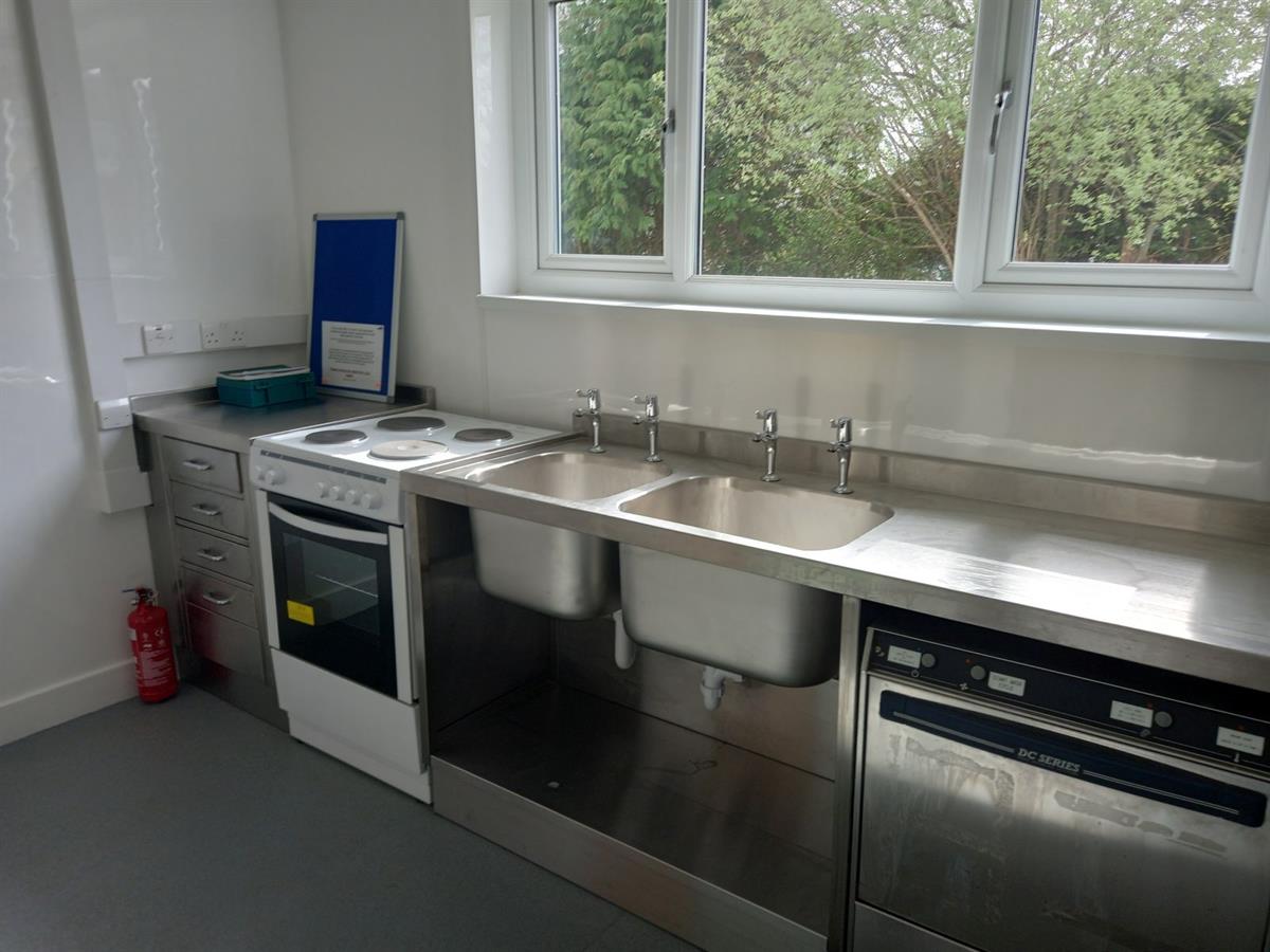 The Main Hall kitchen has recently (September 2024) been refurbished. It has a range cooker, a microwave, a hot water urn, a warming cabinet, a commercial dishwasher and a domestic fridge. It has crockery, cutlery and glassware to serve a meal to more than 100 people.